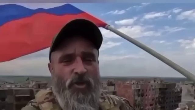 ?Командир Группы Вагнер - Герой России, Александр "Ратибор" Кузнецов водружает флаг Росси и знамя Ч