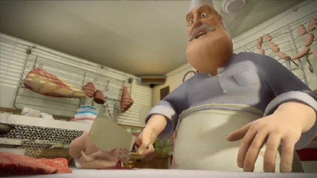 Мясная лава, мясник привычным движением начинает разделывать курицу, и сие действие застает маленький мальчик. Шок, удивление, травма детства - пусть мясник выкручивается как может!:)