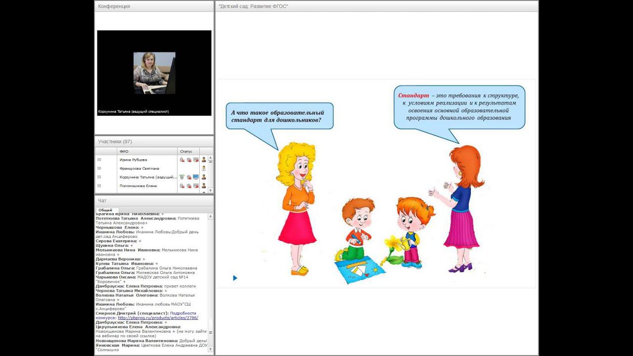Видеозапись вебинара для заведующих детских садов и их заместителей от Программного центра "Помощь образованию" Тема: Учет развития детей в соответствии с ФГОС дошкольного образования в программе "Детский сад: Развитие ФГОС". Обзор требований ФГОС ДО Дата: 10 декабря 2015