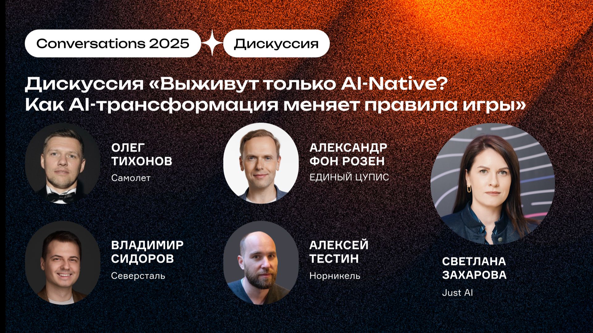 Выживут только AI-Native? Дискуссия: Северсталь, Самолет, ЕДИНЫЙ ЦУПИС, Норникель, Just AI