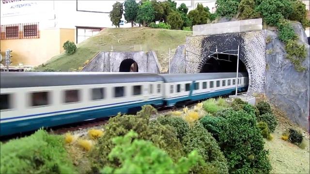 Riproduzione in scala H0 del treno ICN"Freccia del Levante"Crotone-Milano dell'anno 2009,come visto su alcuni filmati al vero di quel periodo. Plastico Del Gruppo Fermodellistico Centoporte alla manifestazione di Cornuda del 7 settembre 2014.