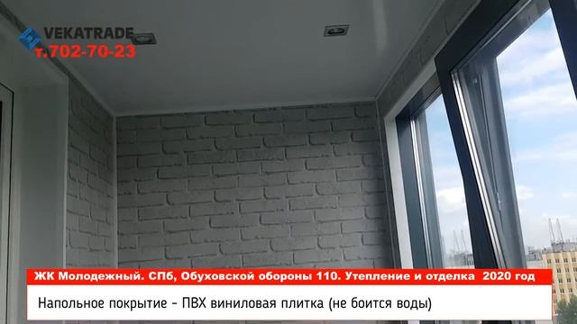 ? ЖК Молодежный , Санкт-Петербург, Обуховской обороны 110 ЖК Молодежный лоджия под ключ. Остекление, утепление и отделка лоджиии в ЖК Молодежный в СПб Мы выполнили работы по остеклению, утеплению и отделке лоджии под ключ в ЖК Молодежный: 1) Установили новое, теплое остекление лоджии от пола до потолка. Замена произведена снаружи, нашими альпинистами. Мы установили теплые стеклопакеты и теплые створки. Створки поворотно-откидные с микропроветриванием. 2) Утеплили пол, потолок и стены на лоджии + дополнительно уложили фольгированную изоляцию 3) Провели освещение, установили розетки и выключатели. Была установлена система теплых инфракрасных полов 4) Потолок зашили пластиковой панелью белого цвета, а стены - пластиковая панель под кирпич 5) На пол уложили ПВХ плитку. Эта плитка, в отличии от ламината, не боится воды. 6) Установили пластиковые плинтуса Утепление балкона, отделка балкона и остекление балкона - наш профиль! Подробнее про наши работы по остеклению, утеплению и отделке балконов в жилом комплексе Молодежный смотрите у нас на сайте https://www.nevskieokna.ru/blog/detail/zhk-molodezhnyy/ МЫ СДЕЛАЛИ БОЛЕЕ 3500 БАЛКОНОВ ПОД КЛЮЧ. СПИСОК ЖИЛЫХ КОМПЛЕКСОВ С ПОДРОБНЫМИ ФОТО И ВИДЕО ОТЧЕТАМИ НАШИХ РАБОТ ЗДЕСЬ https://www.nevskieokna.ru/zhilye-kompleksy/ Наша компания «VEKATRADE» предлагает вам несколько вариантов ремонта вашего балкона. При заказе сразу нескольких услуг по остеклению. утеплению и отделке балкона или лоджии, вы существенно экономите свои средства. ?Подпишись на наш канал и вступи в нашу группу Вконтакте https://vk.com/vekatrade - получи подарок при заказе наших услуг ? VEKATRADE любые балконы под ключ - остекление\утепление\отделка\объединение. https://www.nevskieokna.ru ? Наше производство и шоурум в г. Санкт-Петербург, ул. автобусная 5 ? Режим работы: Пн-вс: 9:00-22-00; Сб-Вс: 9:00-21:00 ☎️ Звоните нам, мы всегда отвечаем: ? Прием звонков по многоканальным тел: +7 (812) 702-702-3 ********************************************************************* ? Наши работы здесь https://www.nevskieokna.ru/portfolio/ ? Про балконы под ключ здесь https://www.nevskieokna.ru/balkon-pod-klyuch/ ? Про остекление балконов и лоджий здесь https://www.nevskieokna.ru/osteklenie-balkonov-i-lodzhiy/ ? Про замену холодного фасадного остекления на теплое здесь https://www.nevskieokna.ru/balkon-pod-klyuch/ ? Про утепление балконов ключ здесь https://www.nevskieokna.ru/uteplenie-balkonov-i-lodzhiy/ ? Про отделку балконов ключ здесь https://www.nevskieokna.ru/otdelka-balkonov-i-lodzhiy/ Подпишись на наш канал ? – «VEKATRADE. БАЛКОНЫ ПОД КЛЮЧ ». https://www.youtube.com/user/vovankochetov/videos