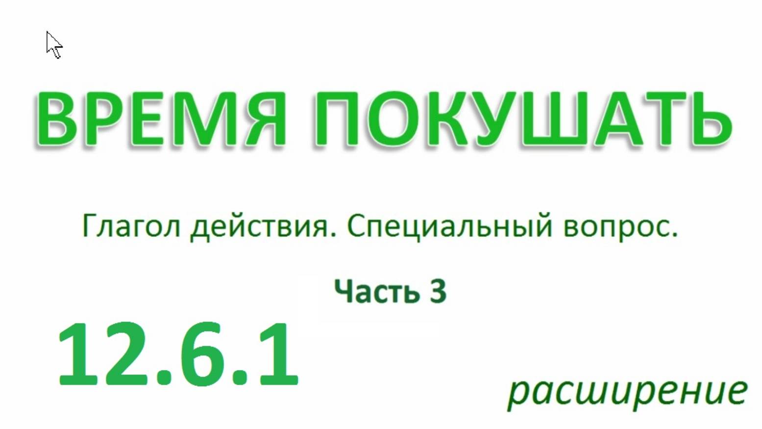 Английский ТРЕНАЖЕР 12.6.1 РАЗГОВОР О ЕДЕ. Глагол действия. Специальный вопрос. Расширение. Ч.3