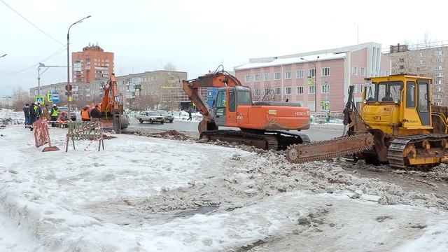 [02.03.2023] Полным ходом идут работы по устранению утечки на водоводе на пр. Ленина в Братске