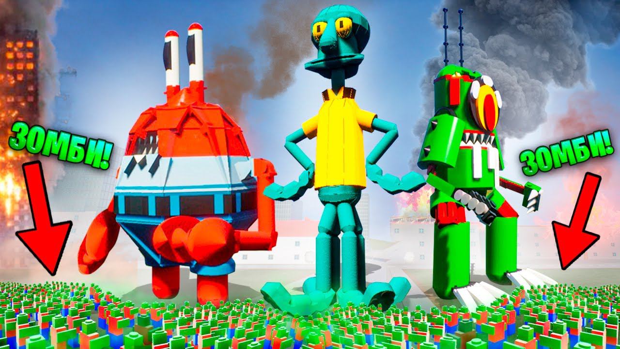 ДЕМОН СКВИДВАРД, МИСТЕР КРАБС И ПЛАНКТОН ПРОТИВ АРМИИ ЗОМБИ! ЛЕГО ЗОМБИ АПОКАЛИПСИС В BRICK RIGS