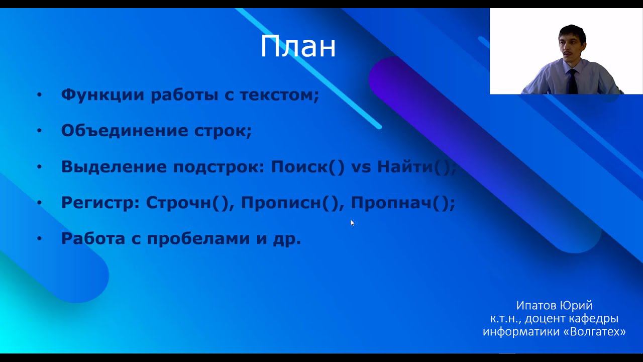 00:01 Обработка текста в табличном процессоре • В видео рассматривается работа с текстом в табличном процессоре. • Изучаются основные функции работы с текстом, объединение строк, выделение подстрок, использование регистра и пробелов. 01:52 Объединение строк • Объединяются строки с использованием символа амперсанд и пробелов. • Можно использовать функцию СЦЕПИТЬ() для объединения строк. 05:34 Поиск и выделение подстрок • Функция "поиск" нечувствительна к регистру, функция НАЙТИ() чувствительна. • Разбивка строк на подстроки с использованием функции НАЙТИ(). 08:10 Выделение объектов из текста • Функция "левый символ" для выделения фамилии. • Функция "правый символ" для выделения имени. • Функция "для" для выделения фамилии из текста. 00:13 План занятия; 00:59 Функции работы с текстом; 01:21 Определение длины строки; 03:01 Объединение строк; 06:16 Выделение подстрок функция Поиск() 07:01 Выделение подстрок функция Найти(). Точное совпадение; 08:00 Пример: Разбивка строк на слова. Функции левый и правый символ. Продолжение во 2-й части: https://youtu.be/cp-NWjeI8V8 Поддержать проект: https://yoomoney.ru/to/4100117178785043 #excel #текст #информатика