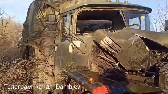 Грузовой автомобиль ЗИЛ-131 украинских формирований после прилета русского fpv-дрона.