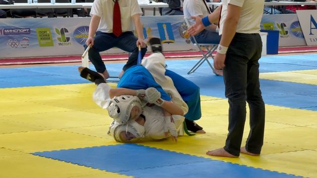 22.02.2025 в Ульяновске прошли V Всероссийские соревнования по кудо на призы ветерана Воздушно-десантных войск, гвардии генерал-майора Орлова В.И. Бой в категории 220 ед. 16-17 лет. В синем Никита Кошельков (Ярославская обл., СШ «Витязь»), в белом Кирилл Банжура (Ульяновская обл.).