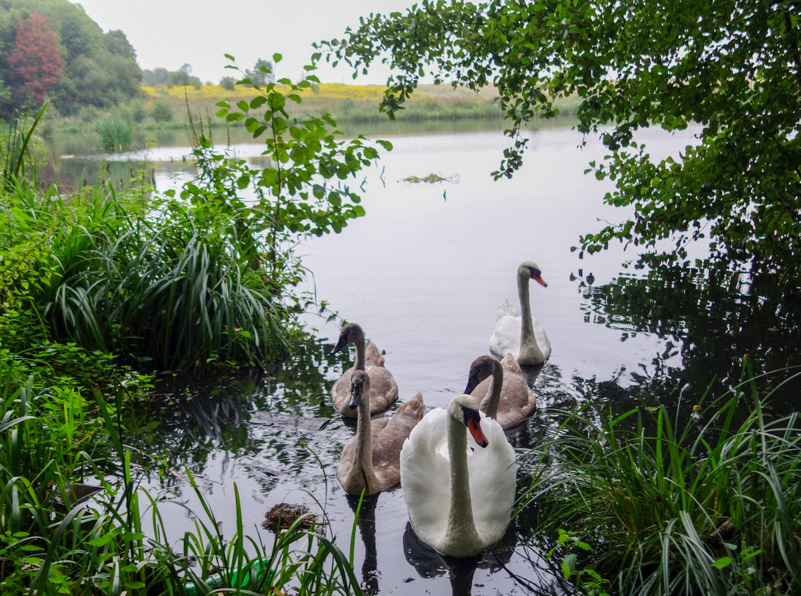 Лебеди и фотограф. Пруд Гурьевска Калининградская область 05.09.2017г.