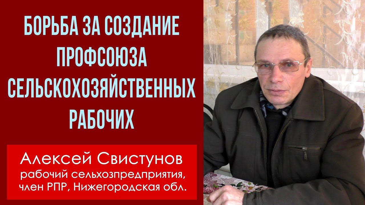 Борьба за создание профсоюза сельскохозяйственных рабочих. Алексей Владимирович Свистунов, рабочий сельскохозяйственного производственного кооператива "Оборона страны", член Рабочей партии России, Пильнский р-н, Нижегородская область. Почта видеоканала Фонда Рабочей Академии Рабочее ТВ: atypus@mail.ru Как вступить в Рабочую партию России: http://www.r-p-w.ru/kak-vstupit-v-rabochuyu-partiyu-rossii.html ___ Для пожертвований в Фонд Рабочей Академии: Карта Сбербанк: 5469550034869302 Михаил Васильевич П. _ Счёт в Альфа-банке: ФИО: Тюленев Сергей Викторович Номер счета: 40817810608900005536 (RUR) Банк получателя: АО «Альфа-Банк», г. Москва БИК: 044525593 Кор. Счет: 30101810200000000593 ИНН Банка: 7728168971 КПП Банка: 770801001 _ ___ Рабочая партия России: http://www.r-p-w.ru РПР ВКонтакте: https://vk.com/rabparty Северо-Кавказское отделение РПР: https://rpw-krd.ru
