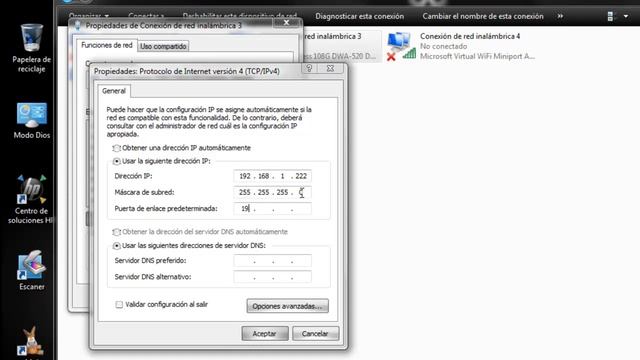 Configuracion ip estatica de adaptador inalambrico