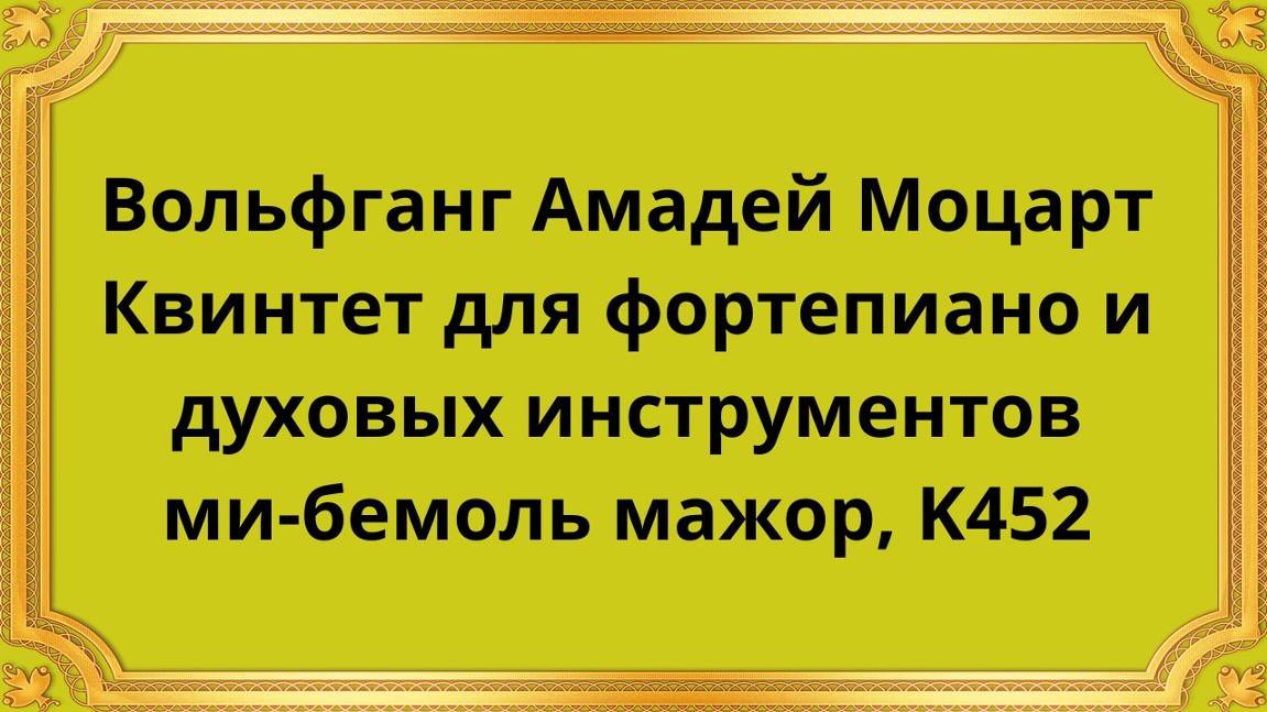 Вольфганг Амадей Моцарт Квинтет для фортепиано и духовых инструментов ми-бемоль мажор, K452