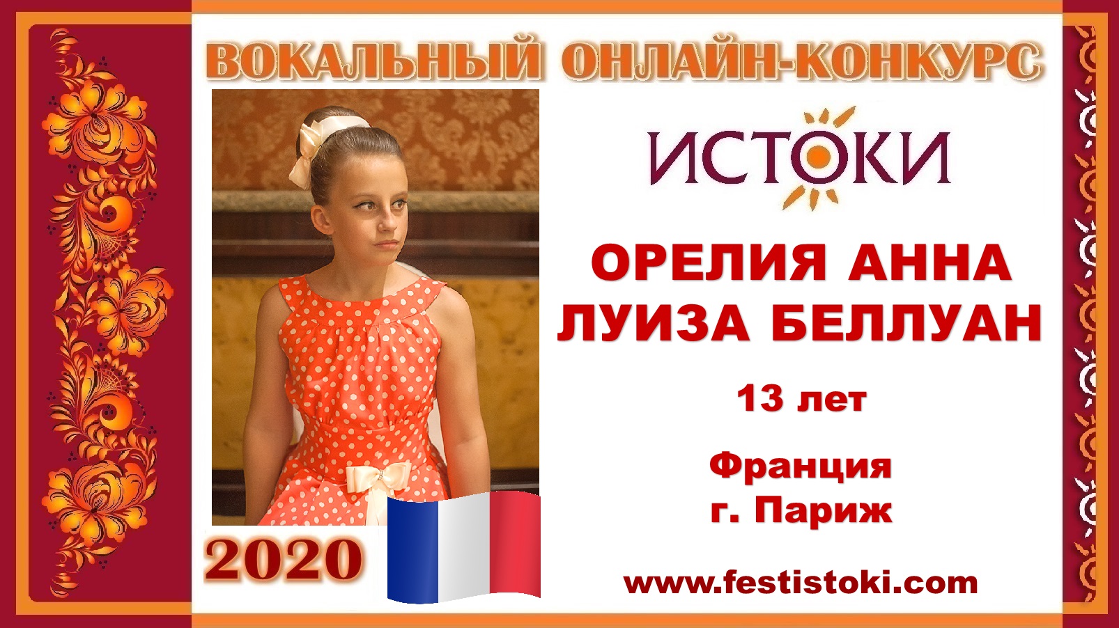 Участница Вокального онлайн-конкурса "Истоки"-2020. Песня "Ландыши". Авторы: композитор Оскар Фельцман, стихи Ольги Фадеевой (Кляйнер) Сайт: www.festistoki.ru / www.festistoki.com E-mail: festistoki@mail.ru