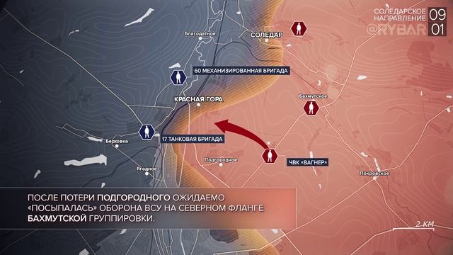 ▪Украинские формирования продолжают попытки атаковать территорию Российской Федерации с помощью беспилотных летательных аппаратов. Несколько целей были уничтожены средствами ПВО в воздушном пространстве около Белгорода. Пострадавших и разрушений нет. ▪Ситуация на Старобельском направлении остается стабильной. Стороны не предпринимают активных действий, ограничиваясь артиллерийскими ударами. На Купянском участке противник с помощью БЛА ведет воздушную разведку российских позиций в районе Куземовки. ▪Отряды ЧВК «Вагнер» продолжают штурм оборонительных позиций противника в Соледаре. Основные бои переместились в зону многоэтажной застройки в центре города, где ВСУ пытаются удержать оборону. ▪После потери Подгородного ожидаемо «посыпалась» оборона ВСУ на северном фланге Бахмутской группировки. Передовые подразделения российских сил заняли позиции в поселках Красная Гора и Парасковиевка, фактически перерезав дорогу на Соледар. ▪К югу от Бахмута командование ВСУ продолжает надеяться удержать оборонительные рубежи в Опытном и Клещеевке. При этом обороняющиеся силы в поселках находятся под плотным огневым контролем российских подразделений и испытывают трудности со снабжением. ▪Центральные районы Донецка вновь подверглась массированному обстрелу из реактивной артиллерии. В результате ударов повреждения получили жилые дома. Погибла женщина, еще три человека получили ранения. ▪Российские войска ракетным ударом уничтожили склад боеприпасов ВСУ в Очакове: на объекте зафиксирована мощная вторичная детонация боекомплекта. По некоторым данным, также уничтожена радиолокационная станция украинского ПВО. #видео #сво #хроника #фронт #Донецк #карта #Луганск #Россия #Украина