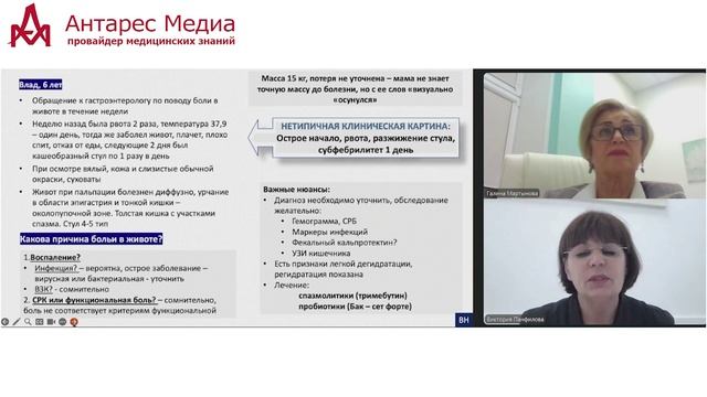 Лекторы: - Мартынова Г.П., д.м.н., профессор, заведующая кафедрой детских инфекционных болезней с курсом ПО КрасГМУ им. проф. В.Ф. Войно-Ясенецкого Минздрава России, заслуженный врач РФ, главный внештатный специалист по инфекционным болезням у детей МЗ РФ по СФО и Красноярскому краю - Панфилова В.Н., д.м.н., доцент кафедры педиатрии Института последипломного образования ФГБОУ ВО КрасГМУ им. проф. В.Ф. Войно-Ясенецкого Минздрава России, главный внештатный детский гастроэнтеролог МЗ Красноярского края