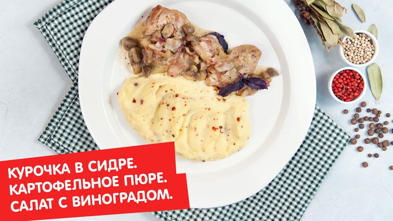 Курочка в сидре. Картофельное пюре. Салат с помидорами и виноградом | Ужин? Не проблема!