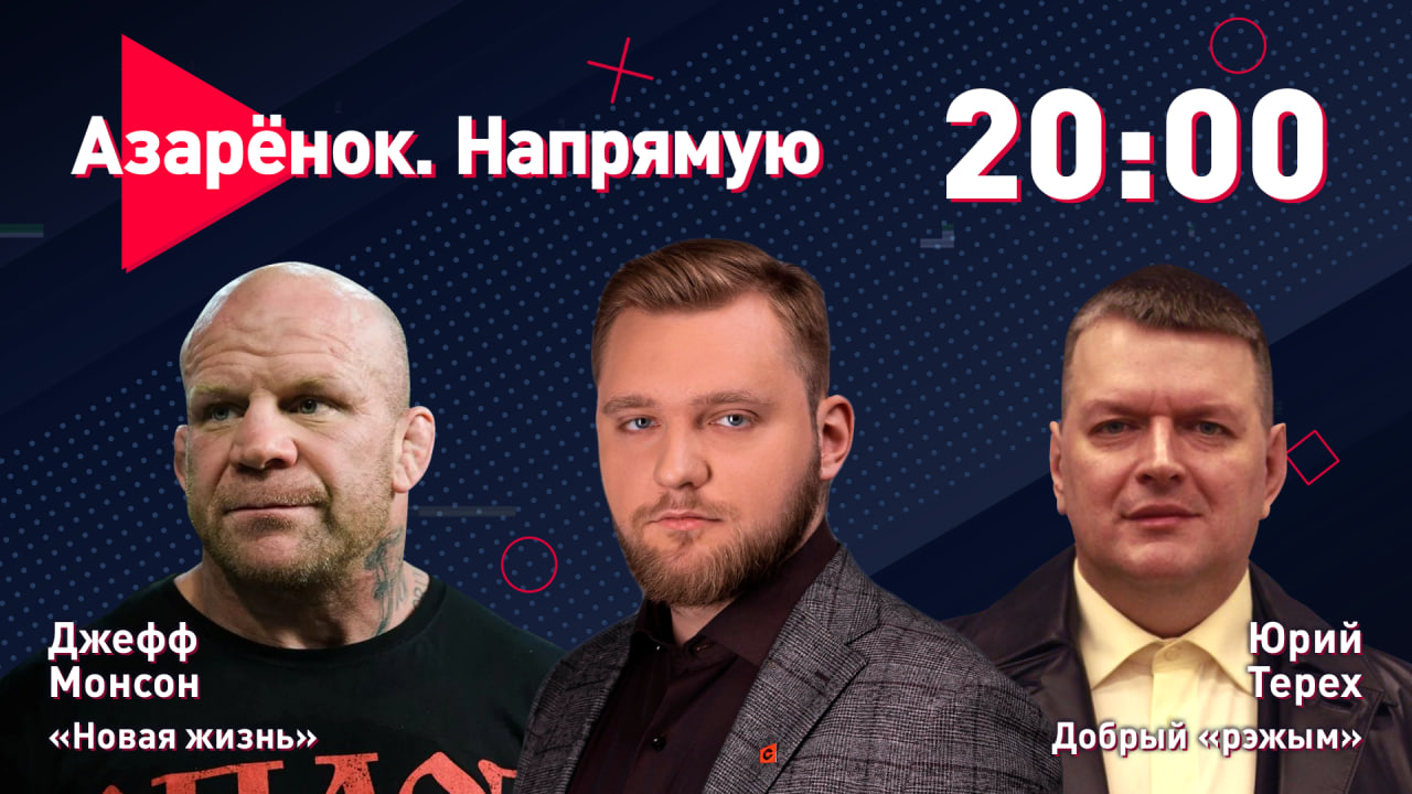19-01-2023_Проект «Азарёнок. Напрямую». О важном в прямом эфире. Вместе с экспертами обсудили жизнь Джеффа Монсона в России и милосердие режима. В гостях публицист Юрий Терех и российский депутат, боец смешанных единоборств Джефф Монсон. Григорий Азарёнок, телеканал СТВ (Беларусь)
