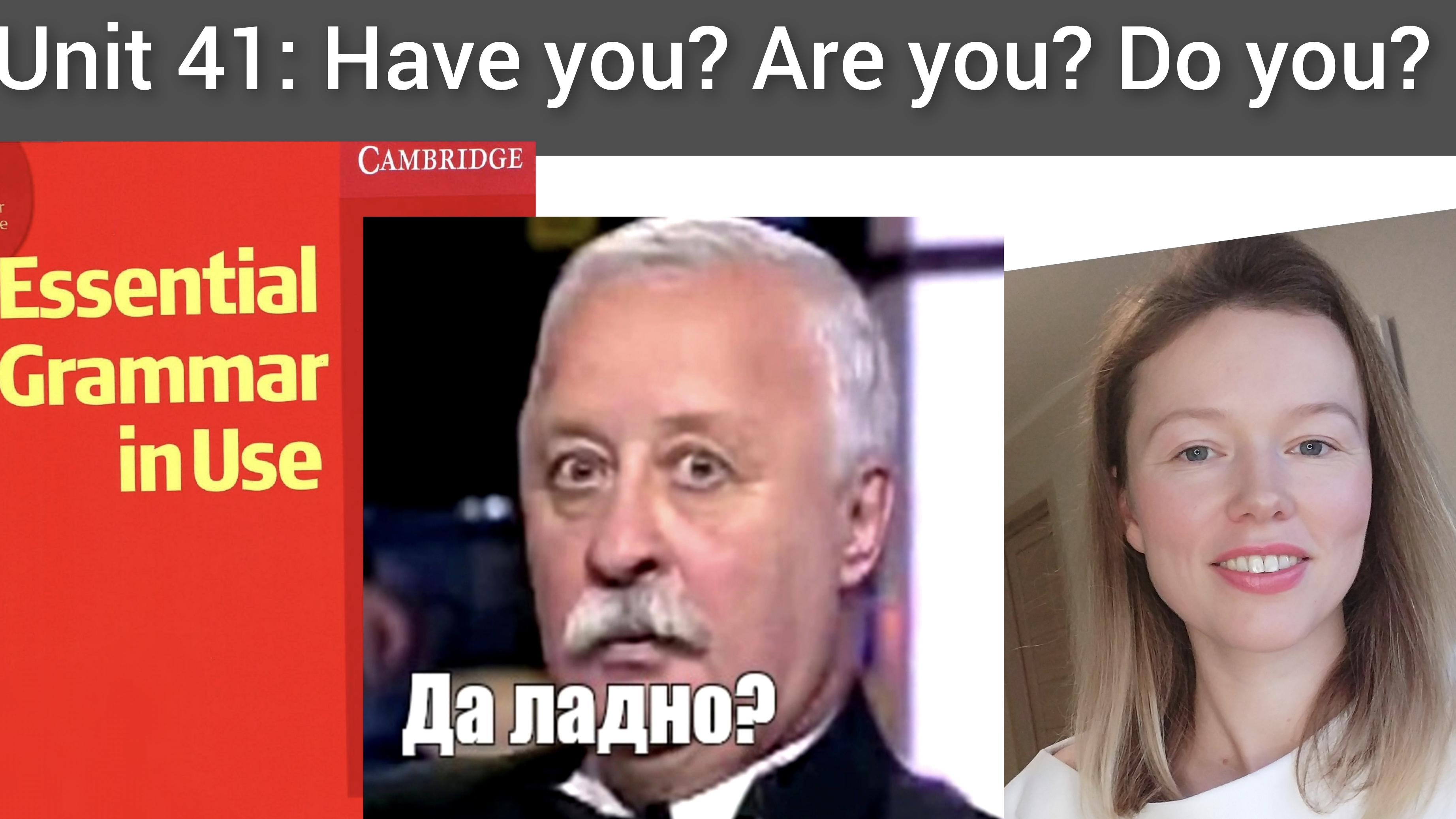 ✍️запись на онлайн занятия со мной: https://taplink.cc/mitryakova_anastasiya_ang ----------------------------------------------------------------------- ➡️ Телеграм: https://t.me/mitryakovaang (новости канала и жизни) ➡️ Яндекс Дзен: https://zen.yandex.ru/id/5f2dba0018ad41461a53897b (здесь все мои видео) Подпишитесь, чтобы не потерять! ------------------------------------------------------------------------- Сегодня у нас урок 41 по Красному Мерфи (Английская Грамматика для начинающих, Murphy). Красный Мерфи Unit 41: Have you? Are you? Don't you? Простым и доступным языком я объясню вам ПРАВИЛА на странице слева. Также мы переведем и разберем все примеры. И конечно вас ждут наглядные примеры из песен и видео, чтобы не только понять, но и ЗАПОМНИТЬ! После этого вы сами сможете сделать д/з: упражнения на странице справа. Но не волнуйтесь, 2-м видео всегда выходит разбор самых сложных упражнений из домашнего задания. Я сделаю так, чтобы вы не только поняли, но и запомнили базовую грамматику английского языка. У меня свои секреты!) ☕ Вам нравятся мои видео? Тогда можете угостить меня чашечкой кофе: ⭐ Сбербанк: 2202 2082 6212 5314 Сейчас, когда я пью кофе, работа над новым видео идет намного быстрее! Спасибо! 👋🙂