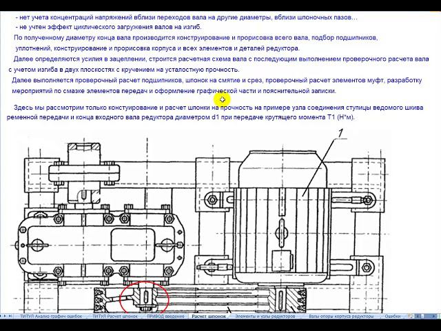 Методические указания "Расчет на прочность шпонок редуктора в составе курсового проекта по деталям машин «Конструирование и расчет электромеханического привода»" 1. Состав электромеханического привода. Актуальность расчета шпонок в составе привода (6 мин. 12 сек.) https://www.youtube.com/watch?v=gGi2Q8BCvek&feature=youtu.be 2. Введение в технику конструирования и расчета валов редуктора (9 мин. 17 сек.) https://www.youtube.com/watch?v=NPBNx5kYjVI&feature=youtu.be 3. Конструирование и назначение размеров шпонки (5 мин. 40 сек.) https://www.youtube.com/watch?v=6f7liDYs2Ac&feature=youtu.be 4. Анализ работы шпонки при передаче крутящего момента (11 мин. 10 сек.) https://www.youtube.com/watch?v=Xb4q1XOn_Lk&feature=youtu.be 5. Расчет средних напряжений смятия и среза в шпонке, условия прочности (5 мин. 47 сек.) https://www.youtube.com/watch?v=jzSCvGBqshk&feature=youtu.be 6. Конечно элементное моделирование работы шпонки в ПК ЛИРА-САПР 6.1. Скачивание свободно распространяемой бесплатной версии ПК ЛИРА-САПР, знакомство с интерфейсом программы, моделирование шпонки объемными конечными элементами (15 мин. 00 сек.) https://www.youtube.com/watch?v=-vb4h2cYpPI&feature=youtu.be 6.2. Расчет нагрузок на шпонку, закрепление шпонки на валу и загружение. Статический расчет (16 мин. 42 сек.). https://www.youtube.com/watch?v=f66Aa4U5YDs&feature=youtu.be 6.3. Анализ результатов расчета НДС шпонки в ЛИРА-САПР. Сравнение ручного и КЭ расчетов напряжений в шпонке (18 мин. 6 сек.). https://www.youtube.com/watch?v=WZ1c1SukCwI Материалы видео сопровождения: Cсылка на сайт разработчика программы ЛИРА-САПР для скачивания некоммерческой версии ЛИРА-САПР 2013 R5 https://www.liraland.ru/news/update/2309/ Файл видео сопровождения в Excel https://drive.google.com/open?id=1C6e81V-rjHbbeG355D7FDkMuF0GggrHf Файл в SketchUP (3D модель шпонки и ее загружение, анимация) https://drive.google.com/open?id=1IRLzwKxlfE-dFA1eEcTuK_oRmOxEmhgT Установочники SketchUp https://drive.google.com/open?id=1lcQk5Oc93s7Elr8o-5jP62fMAvQplNyH https://drive.google.com/open?id=1-p8eeIjrl-OTHh63XIB8pjz2sC3jEzi9 Файл расчета шпонки в ЛИРА-САПР https://drive.google.com/open?id=1BP-Rjj8ETHHduQmGnrk7eUUA-rGDW9Vb Список литературы https://drive.google.com/open?id=1GTwZQJV5pOXTS5k21qIXaqyGq-IZWVzy Рекомендуемые видео (перевод технических единиц): 1 Н это сколько…? 1 Па это много или мало? Как перевести, например, 20 МПа в кгс/см2? Вопросы на защиту КП https://drive.google.com/open?id=1KDLv8CYfw_vK_Qxw-Yi3dMgyeLrlf9Pu