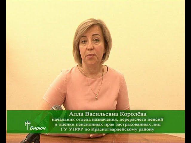 Алла Васильевна Королёва, начальник отдела назначения, перерасчета пенсий и оценки пенсионных прав застрахованных лиц ГУ УПФР по Красногвардейскому району.