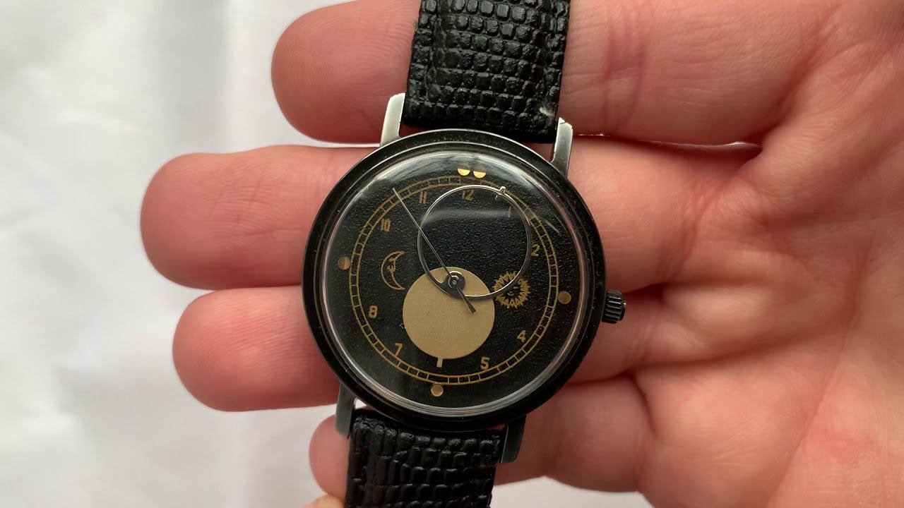 Видеообзор на редкие часы Ракета-Коперник с месяцем и солнцем Петродворцового Часового Завода 1980-х