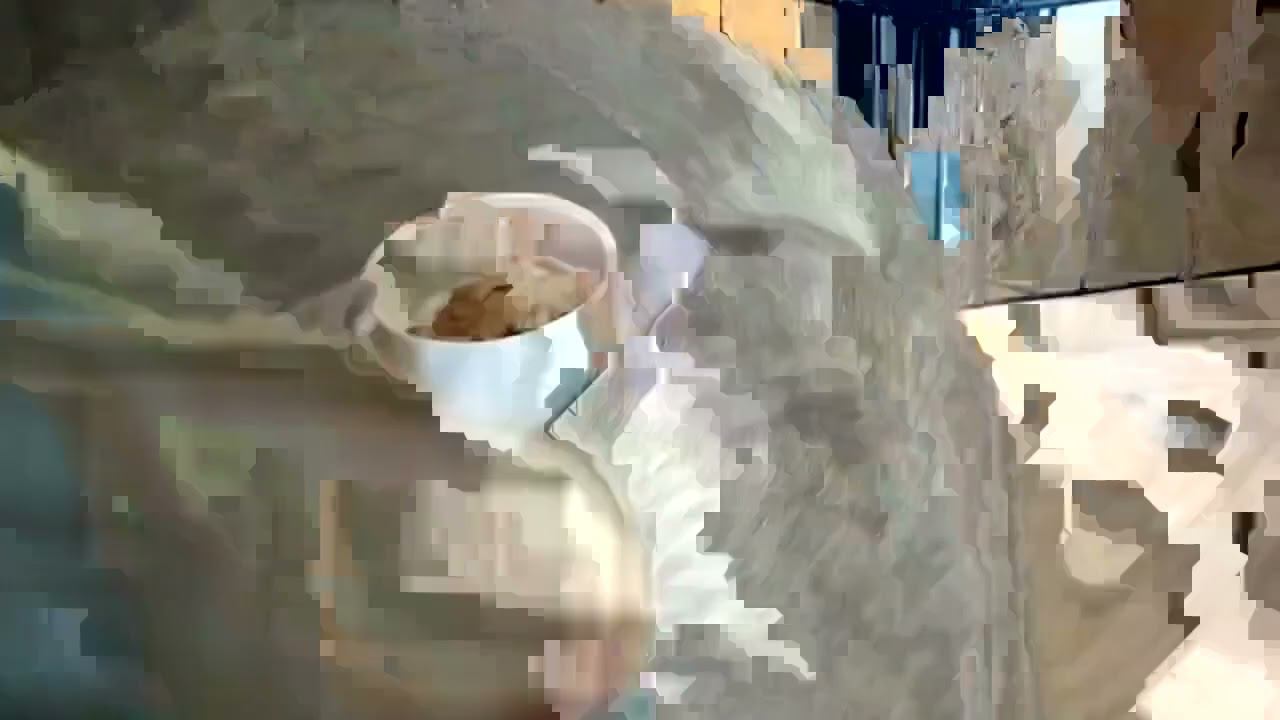 Голодный котенок пробует еду