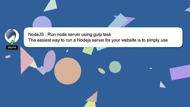NodeJS : Run node server using gulp task To Access My Live Chat Page, On Google, Search for "hows tech developer connect" I promised to reveal a secret feature to you, and now it's time to share it. This is a YouTube's feature which works on Desktop. First, Make sure the video is currently in playing mode. Next, enter the letters 'awesome' on your keyboard. The progress bar on YouTube will be altered to a flashing rainbow. A brief introduction of myself, Hello, I am Delphi. Let me aid you in resolving any queries you may have. NodeJS : Run node server using gulp task Don't hesitate to ask me more detailed questions by commenting or starting a chat. Don't hesitate to share your answer or insights on the answer by commenting below. Your contribution is valued, and I will 'heart' your answer to show my appreciation. NodeJS Run node gulp : using server task