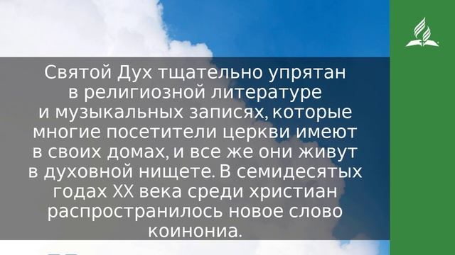 Благодать Господа нашего Иисуса Христа, и любовь Бога Отца, и общение Святого Духа со всеми вами (2 Кор. 13:13). Когда 72-летний Чарльз Хейнс умер в жуткой нищете в кишащем тараканами полуразвалившемся доме, официальные лица были удивлены, обнаружив 11 000 долларов, спрятанных в его комнате. Позднее они узнали, что, ежемесячно получая пенсию в размере 563 доллара и имея на своем банковском счету более 22 000 долларов, Хейнс жил на 30 долларов в месяц. Сосед сказал, что Хейнс обрил себе голову, чтобы сэкономить деньги на стрижке волос, и хранил, «возможно, тот первый цент, который он когда-то приобрел, и всегда беспокоился о том, как бы кто не отнял его» (Oregonian, Dec. 12, 1990). Большинство людей сочли бы Чарльза Хейнса сумасшедшим, но, к сожалению, подобным образом поступают и христиане в своих взаимоотношениях со Святым Духом. Он пребывает в сердце каждого возрожденного верующего, но Его сила остается неиспользованной, как деньги Хейнса. Святой Дух тщательно упрятан в религиозной литературе и музыкальных записях, которые многие посетители церкви имеют в своих домах, и все же они живут в духовной нищете. В семидесятых годах XX века среди христиан распространилось новое слово коинониа. Во многих местах образовывались группы и служители коинониа. Людей привлекали общение и возможность возрастать совместно друг с другом и с Господом. Это слово, переводимое как «содружество», «общение», «участие», используется в Новом Завете около двадцати раз. Христиане имели коинониа с Иисусом (1 Кор. 1:9) и даже с Его Телом и Кровью на Вечере Господней (1 Кор. 10:16). Они имеют коинониа в служении (2 Кор. 8:4; Гал. 2:9) и в распространении их веры (Флп. 6). Христиане имеют коинониа не только с Отцом и Сыном, но и друг с другом (1 Ин. 1:3, 7). Иметь коинониа с Духом Святым, что подчеркивает Павел в своем благословении, — значит говорить с Ним, радоваться Его общению, быть в осознанной дружбе и связи с Ним и ощущать Его могущественную силу в жизни. Мы можем сказать, что Чарльз Хейнс не имел коинониа с его деньгами, поэтому ни он, ни другие нуждающиеся не получили пользы от них. К сожалению, подобная ситуация возможна и в отношениях с вашим другом Святым Духом. МОЛИТВА Святой Дух, я сожалею, что пренебрегал Тобой и не имел общения, которое Ты хотел бы иметь со мной. Пожалуйста, помоги мне сейчас изменить такое положение вещей. https://esd.adventist.org/library/periodicals/ezhednevnyie-chteniya/ #адвентисты #АдвентистыСедьмогоДня #Церковь #ЦерковьАдвентистовСедьмогоДня #ЦерковьХристианАдвентистовСедьмогоДня