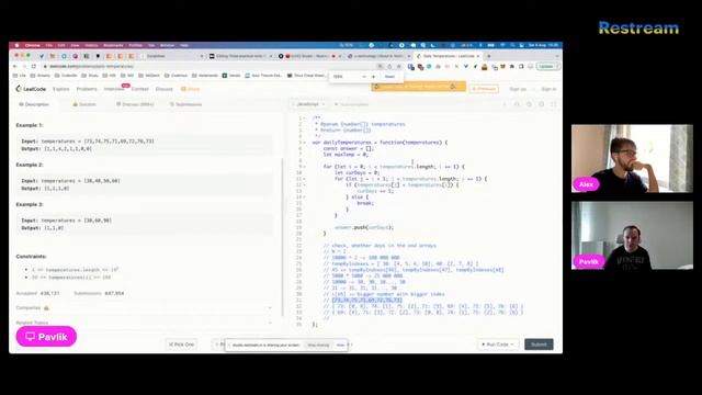 XTechnology Code Hour Programming It's a one-hour session where our experts and guests will improvise and explore topics live. This is a mentoring initiative for junior and middle science and technology explorers. This time it is: LeetCode with JavaScript by - Pavlik Kiselev, Frontender - https://www.linkedin.com/in/%F0%9F%92%BB-pavlik-kiselev-06993347 - JavaScript developer with full-stack experience and frontend passion. Loves to talk about serverless, teach serverless and ready to organize workshops about serverless - Alex Korzhikov - https://twitter.com/AlexKorzhikov - Software engineer, instructor, mentor, and author of technical materials They will try to solve a couple of Leetcode tasks live. Something one could expect at JavaScript, Algorithms & FrontEnd interviews. Join to learn new techniques, ask anything and grow! #algorithm #programming #interview #leetcode #javascript #frontend --- Follow us on: - Twitter https://twitter.com/XTechnology5 - Telegram https://t.me/xtechn - Eventbrite https://www.eventbrite.com/organizati... - Github https://github.com/x-technology - Patreon https://www.patreon.com/xtechnology