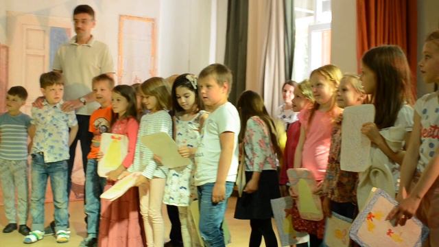 1б класс поздравляет и дарит подарки выпускникам.