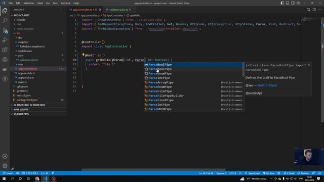 Documentation: https://docs.nestjs.com/ GitHub repository: https://github.com/Ihorhavryliak/nest. @youritdeveloper Nest js / Канали / Валідатори / Pipes У цьому відео ми дослідимо потужність каналів у Nest.js. Як відомо, перевірка даних є важливим аспектом будь-якої програми. Це гарантує, що дані, які використовує програма, є правильними та узгодженими, що, у свою чергу, покращує роботу користувача та зменшує кількість помилок. Канали в Nest.js забезпечують простий і потужний спосіб перевірки та перетворення даних. Ми почнемо з визначення, що таке канали та як їх можна використовувати для перевірки та перетворення даних на різних рівнях нашої програми Nest.js. Потім ми зануримося в різні типи каналів, доступних у Nest.js, і коли використовувати кожен з них. У цьому відео ми будемо створювати просту програму Nest.js і використовувати канали для перевірки та перетворення даних для різних сценаріїв. Ми розглянемо перевірку HTTP-запитів, запитів до бази даних та інших типових сценаріїв. До кінця цього відео ви добре зрозумієте, як використовувати канали Nest.js для перевірки та трансформації даних як професіонал. Незалежно від того, чи ви новачок у Nest.js, чи досвідчений розробник, це відео надасть вам цінну інформацію про те, як зробити ваші програми більш надійними та стійкими. Отже, давайте зануримося та дізнаємося про канали в Nest.js! In this video, we will explore the power of pipes in Nest.js. As you know, data validation is a crucial aspect of any software application. It ensures that the data being used by the application is correct and consistent, which in turn leads to better user experience and fewer errors. Pipes in Nest.js provide a simple and powerful way to validate and transform data. We will start by defining what pipes are and how they can be used to validate and transform data at different levels of our Nest.js application. We will then dive into the different types of pipes available in Nest.js and when to use each one. Throughout the video, we will be building a simple Nest.js application and using pipes to validate and transform data for different scenarios. We will cover validation for HTTP requests, database queries, and other common scenarios. By the end of this video, you will have a solid understanding of how to use Nest.js pipes to validate and transform data like a pro. Whether you are new to Nest.js or an experienced developer, this video will provide you with valuable insights into how to make your applications more robust and resilient. So, let's dive in and learn about pipes in Nest.js!