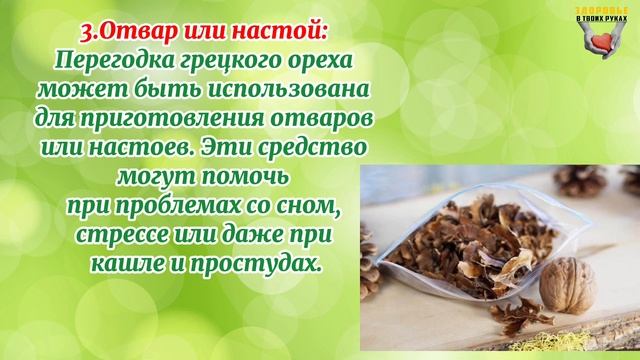 Какими уникальными свойствами обладают перегородки грецкого ореха? Как использовать их целебные свойства? При каких заболеваниях применяются перегородки грецкого ореха и как приготовить из них целебный отвар и настойку, а главное, какой вред и какие есть противопоказания к применению? Сегодня мы собрали самую полезную информацию будет много пользы поэтому смотрите видео до конца!