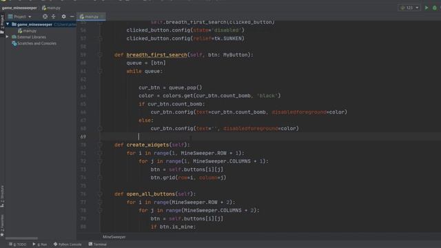 Игра "Сапер" на Python, Обход в ширину. Minesweeper in Python Tkinter