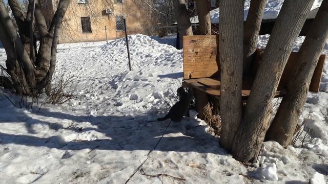 Кот на прогулке, чухается и оставляет свои запахи.