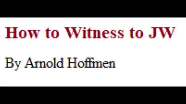 Witnessing to Jehovah's Witnesses By Arnold Hoffman
