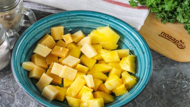 Сочный и праздничный новогодний салат "Три в одном", как вы догадались, состоит из трех ингредиентов. Любопытно, но вы можете их заменять другими, дорогими, не предназначенными для будничного стола. Ингредиенты: Ветчина150 грамм, Ананас150 грамм(консервированный), Сыр150 грамм(твердый), Майонез2 ст. ложки, Благодарим за просмотр! Подписывайтесь на канал🍕 Поделитесь своим мнениенм о рецепте в комментариях!
