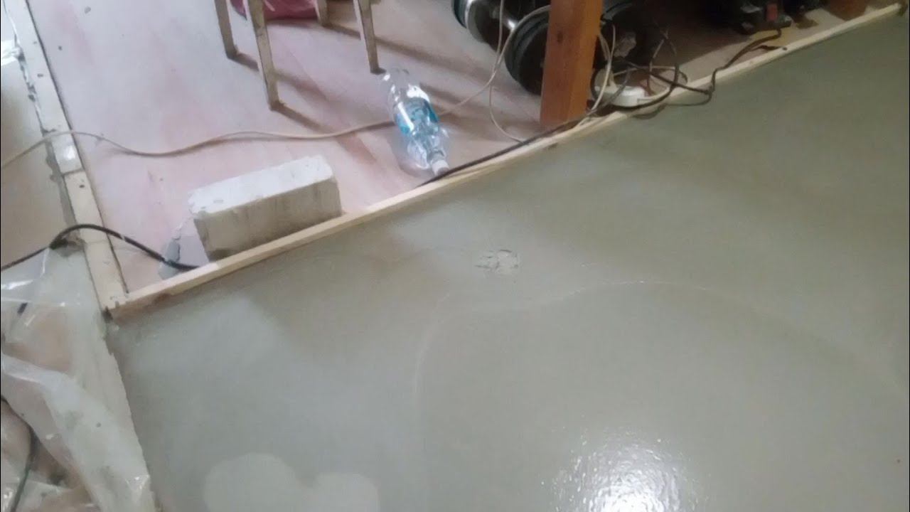 Итоги заливки наливным полом участка жилой комнаты.Неудачные цементные маяки.