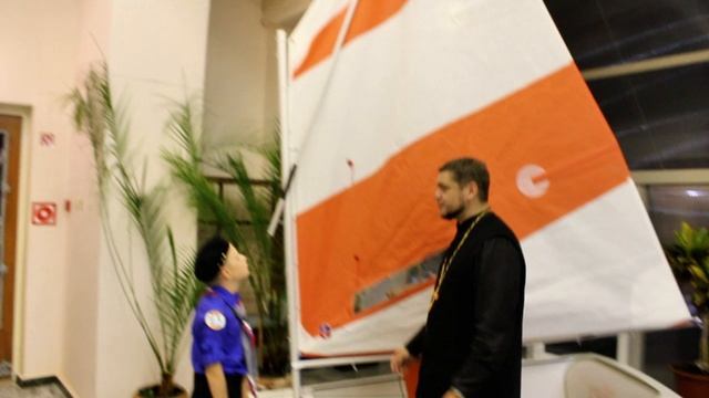 Урок 2. Курсы начинающих мореходов. Российского флота сыны. Рангоут и паруса. Ведущий дозорный третьей ступени, юнга Георгий Цуприков, скаут-инструктор шкипер священник Алексий Занозин, скаут-инструктор, шкипер Анна Пустозерова