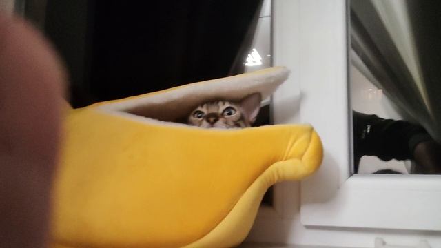 Кот спит в новой лежанке