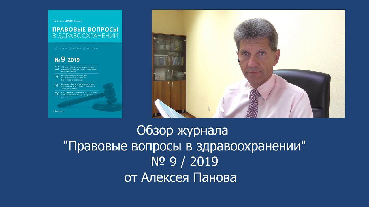 Правовые вопросы в здравоохранении. № 9 / 2019