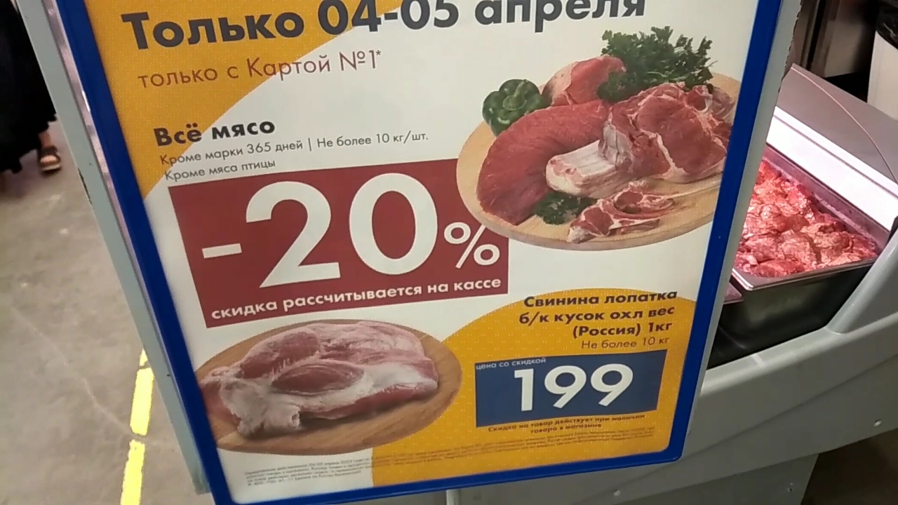 Краснодар - гипермаркет Лента? - Лопатка свиная 199 руб? - 04.04.2023