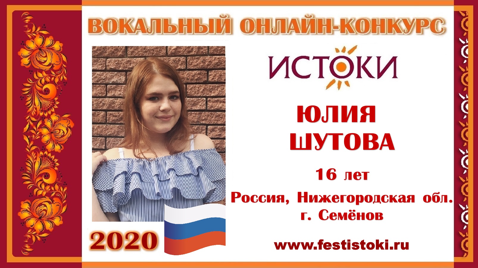 ЮЛИЯ ШУТОВА, 16 лет (Россия, Нижегородская область, г. Семёнов). "Мы из России"