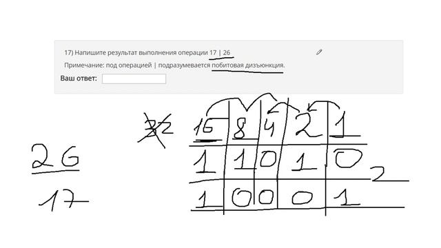 Побитовая дизъюнкция (побитовое сложение). Результат операции 17 | 26