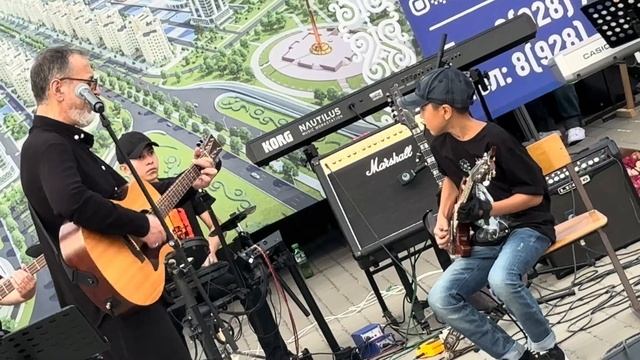 Фестиваль живой музыки в Грозном "Город будущего - Время перемен!" Народный артист Чеченской Республики Альви Альтамиров представил свою новую песню. Он исполнил её совместно с командой "Грозный", вместе с юными талантами Хамидом (гитара) и Абдуллой (ударник) Исаевыми.