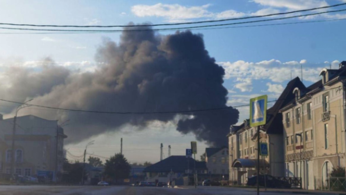Опубликованы кадры пожара, возникшего в Сергиевом Посаде после атаки ВСУ.