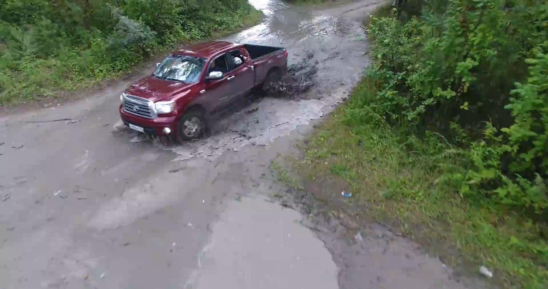 Тойота Тундра. Перемещение по очень легкому бездорожью. Резина "гражданская". Доступно в разрешении 4K.