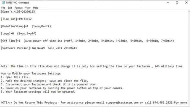 How to edit a Tactacam Timesync.txt file and get it to "stick".