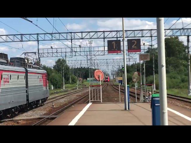 ЭС1-033 "Ласточка" сообщением Москва-Смоленск с приветливой бригадой по станции Петелино
