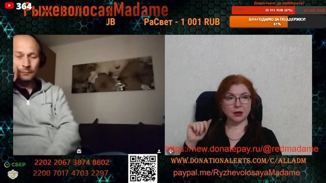 Стримы проводим на новом канале по ссылке https://www.youtube.com/channel/UCpd7cP8a8TbXkhRfZB9-V1g также стримы можно смотреть на следующих платформах https://vkplay.live/rmadame https://vk.com/video/ @RMadame https://boosty.to/ryzhevolosaya-madame Свежие нарезки можно смотреть https://dzen.ru/redheadmadamchat?share_to=link https://www.youtube.com/@RMadam1 https://www.youtube.com/@RMadame Пообщаться в голосовом чате, обсудить новости и узнать первым о предстоящем стриме можно подписавшись на телеграмм канал https://t.me/redheadMadamchat Все беседы ведутся с развлекательной целью и не направлены на разжигание какой либо вражды. Поддержать меня карта Сбер 2202 2067 3874 8602, Тинькофф 2200 7009 0724 4924 или голосовым донатом по ссылке https://www.donationalerts.com/r/alladm Для вопросов и предложений @RedHeadMadamBot