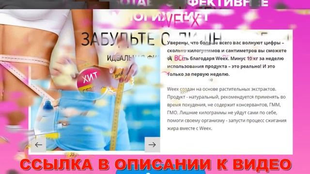 Минус 47 кг 👉👉👉 https://kahgo.top/HXrPskp 🔴 WEEX - Первый живой коктейль для быстрого избавления от лишнего веса 👉👉👉 https://kahgo.top/HXrPskp Заказывай на официальном сайте 👉👉👉 https://kahgo.top/HXrPskp Двухкомпонентный био-коктель для экспресс-похудения и очищения организма! - 1-ая активная формула - Неповторимая технология смешивания - Регулирует обмен веществ - Активизирует саморегулирующийся процесс жиросжигания - Очищает весь организм от шлаков и токсинов ЖИВОЙ КОКТЕЙЛЬ WEEX: - Поможет значительно устранить жирные накопления в проблематичных областях (бедра, живот). - Возбуждает обмен веществ так, чтобы организм человека переваривал пищу, а не накапливал. - Снижает размеры внутренностного жира - Оптимизирует нагрузку на внутренние органы - Крепит сердечно-сосудистую систему - Протестирован в медицинских условиях ЧТО ТАКОЕ WEEX Живой коктель WEEX разрабатывался в США по заказу ВОЗ для современных людей, мучащихся ожирением. В 2018 в Массачусетском университете питания и диетологии начали изготовление средства, способного эффективно сжигать внутренностный жир. Ученый института диетологии Др.Фокс в период изучений узнал, что у молекул косточек Чиа существуют функции адсорбента. Это качество вдохновило экспертов сотворить чистые и гипоаллергенные молекулы, которые способны перемещать жиросжигающие соединения в тело, а впоследствии выводить жировые накопления и токсины. На основе этих молекул был создан первый живой коктейль для безопасного похудания - WEEX, который продемонстрировал отличные результаты в течении клинических тестирований. В особенной крышке - емкости - активный био-порошок с неповторимыми поглощающими возможностями. Попадая в детокс-экстракт, порошок обогащается жиросжигающими ингредиентами. В человеческом организме эти компоненты приступают тотчас оказывать действие, а био-порошок преобразуется в адсорбент, притягивающий жир, яды и шлаки. “Мои клиенты - домохозяйки и матери в декретном отпуске, с каковыми я занимаюсь персонально, в домашних условиях. У них нет свободного времени на фитнесс-клубы и серьезные нагрузки, а режим даже не позволяет сделать выкладки диету. Но это не предлог избавляться от избыточного веса. Чтобы ускорить эффекты наших тренировок и действительно быстро избавиться от надоевших сантиметров, я советую живой коктейль WEEX. Вместе с ним мои подопечные очень быстро приходят в дородовую хорошую форму и становятся подтянутыми и стройными буквально за несколько месяцев.” “В исследовательский центр диетологии попадают пациенты, которые страдают не только лишь избыточным весом, но и осложнениями на его фоне. С осложнениями противопоказаны атлетические нагрузки или жесткие диеты. На этот случай подойдет живой коктейль WEEX. Эта уникальная разработка получила сертифика
